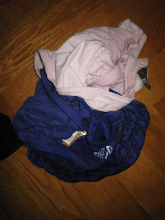 Kanske var därför medlemmarna var lite svår-flirtade och orklösa idag. Trist… jag som hade ett nytt snyggt lila Nike-linne och kände mig riktigt laddad! Ja, ja, gav järnet och fick ändå ett o annat leende. 😉 Och den äckliga genomblöta högen nedan är resultatet av detta svettiga pass: